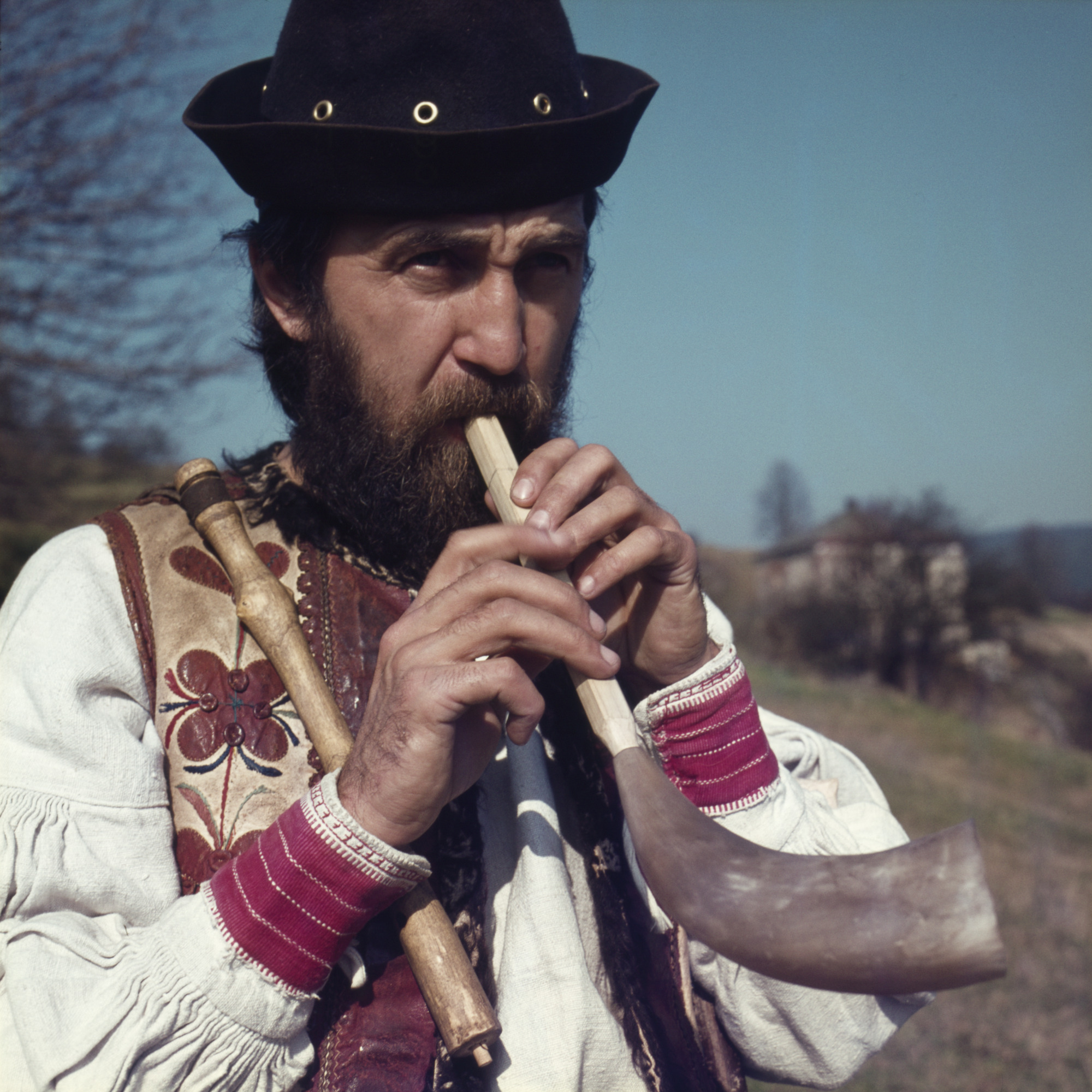 Descripton Bartolomej Gernát hrajúci na gajdici. Recorded by Szabó, Tibor (1935-2014) Municipality of origin Krivany Region of origin Šariš Performer Gernát, Bartolomej (1942-2021) Date of capture 1981 Subject Classification 6.3.1. Ľudové hudobné nástroje Key words hudobné nástroje