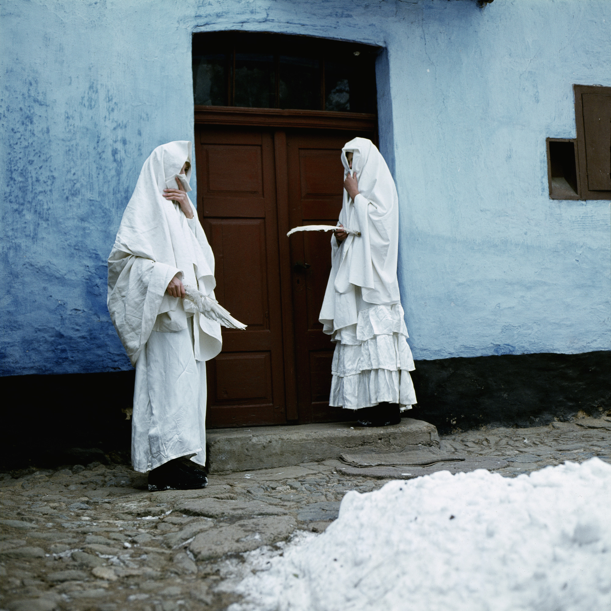 Descripton Dve maskované Lucie pred vchodom do obytného domu. Sú oblečené v bielom a v ruke držia husie krídlo. Note Výskumník Stanislav Dúžek. Recorded by Szabó, Tibor (1935-2014) Municipality of origin Selec Region of origin Stredné Považie Place of capture Selec Date of capture 1978 Subject Classification 3.2. Kalendárne sviatky a obyčaje