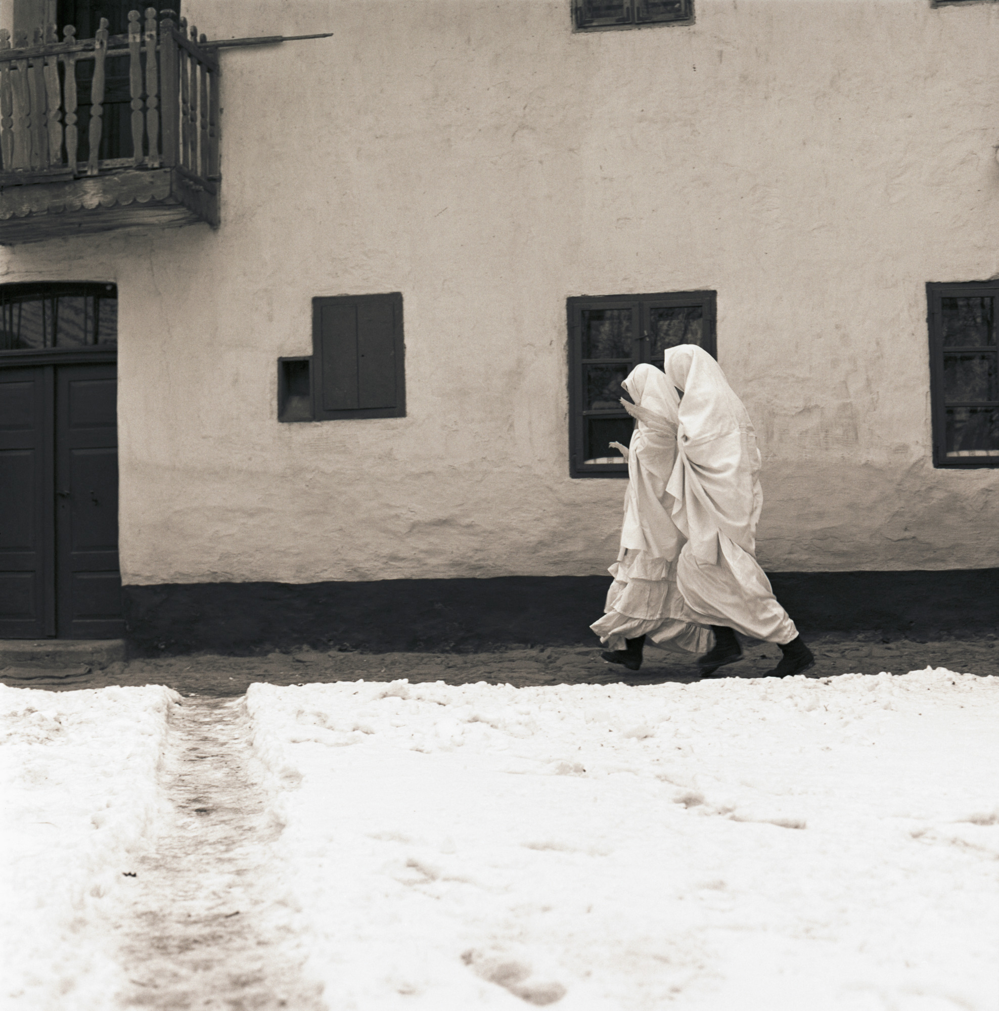 1. Descripton Na obchôdzky chodilo viac skupiniek Lucií, od menších dievčat (školáčiek) až po dievky. Dve maskované Lucie kráčajúce ku vchodu obytného domu. Sú oblečené v bielom a v ruke držia husie krídlo.