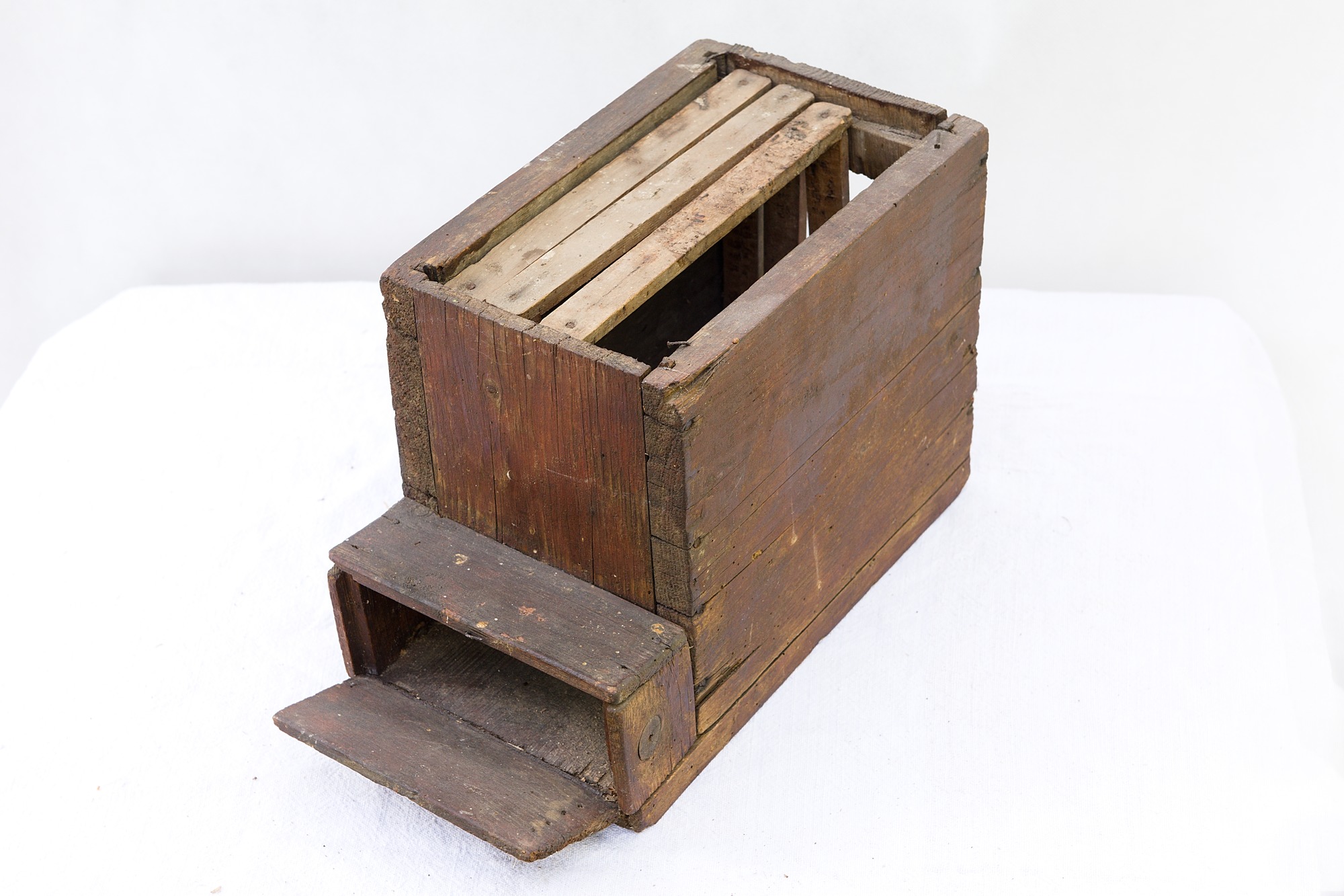 Popis Drevený štvorrámikový úľ na chov matiek, nazývaný "oplodniačik". Zo zadnej strany úľa je otvor na vetranie, ktorý bol zakrytý hustým pletivom. Pohľad zhora na rámiky vo vnútri. Všeobecný popis Úle si včelári vyrábali sami. Poznámky Úľ je súčasťou zbierky úľov a včelárskeho náradia Ondreja Belicu z obce Hostie. Autor/-ka záznamu Veselský, Michal (1980-) Dátum vzniku diela 50. roky 20. storočia Región pôvodu Bez zaradenia Miesto záznamu Hostie Dátum zaznamenania 27.8.2015 Predmetová klasifikácia 4.2.7.9. Včelárstvo Kľúčové slová úľ