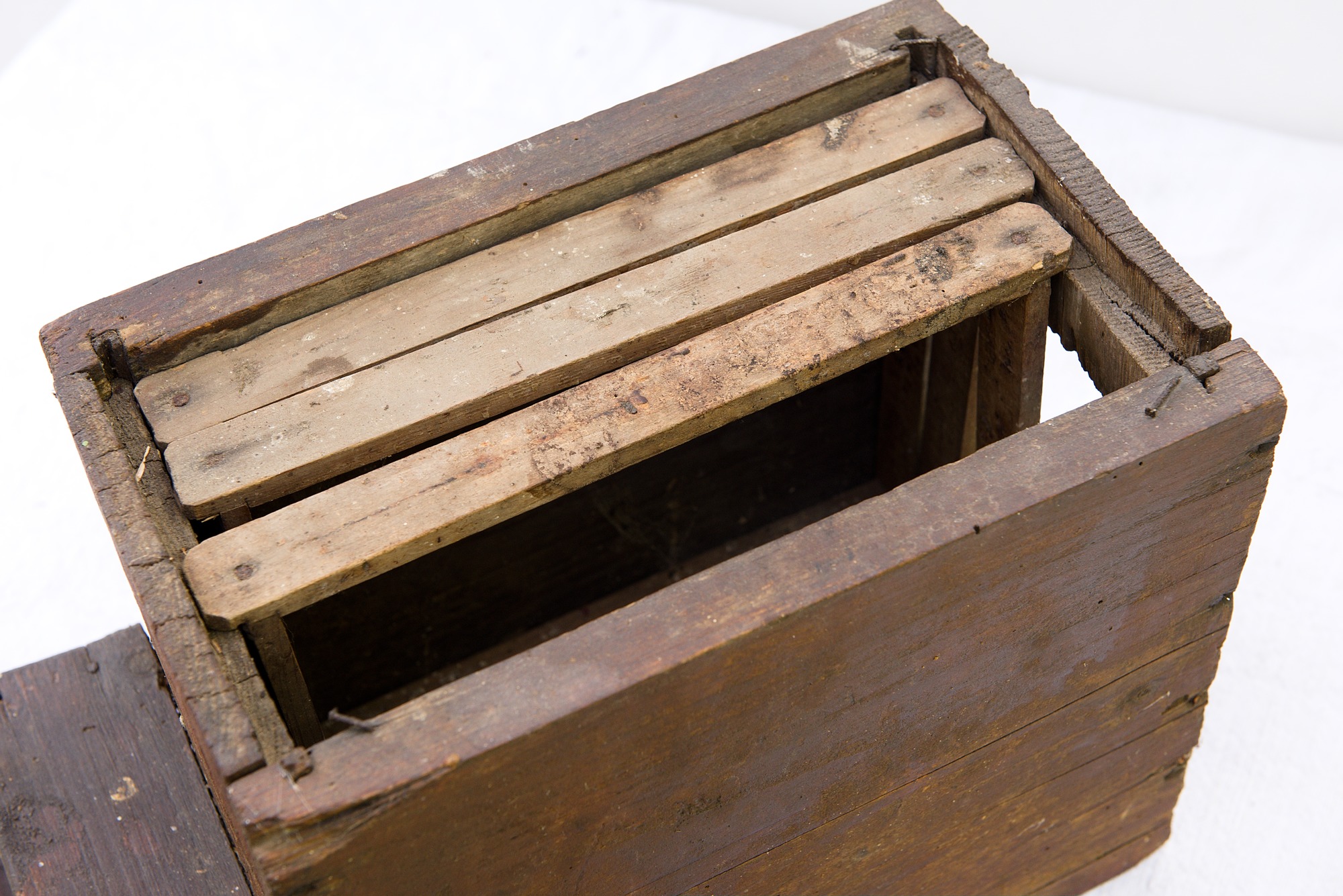Popis Drevený štvorrámikový úľ na chov matiek, nazývaný "oplodniačik". Zo zadnej strany úľa je otvor na vetranie, ktorý bol zakrytý hustým pletivom. Bližší pohľad na rámiky vo vnútri. Všeobecný popis Úle si včelári vyrábali sami. Poznámky Úľ je súčasťou zbierky úľov a včelárskeho náradia Ondreja Belicu z obce Hostie. Autor/-ka záznamu Veselský, Michal (1980-) Dátum vzniku diela 50. roky 20. storočia Región pôvodu Bez zaradenia Miesto záznamu Hostie Dátum zaznamenania 27.8.2015 Predmetová klasifikácia 4.2.7.9. Včelárstvo Kľúčové slová úľ