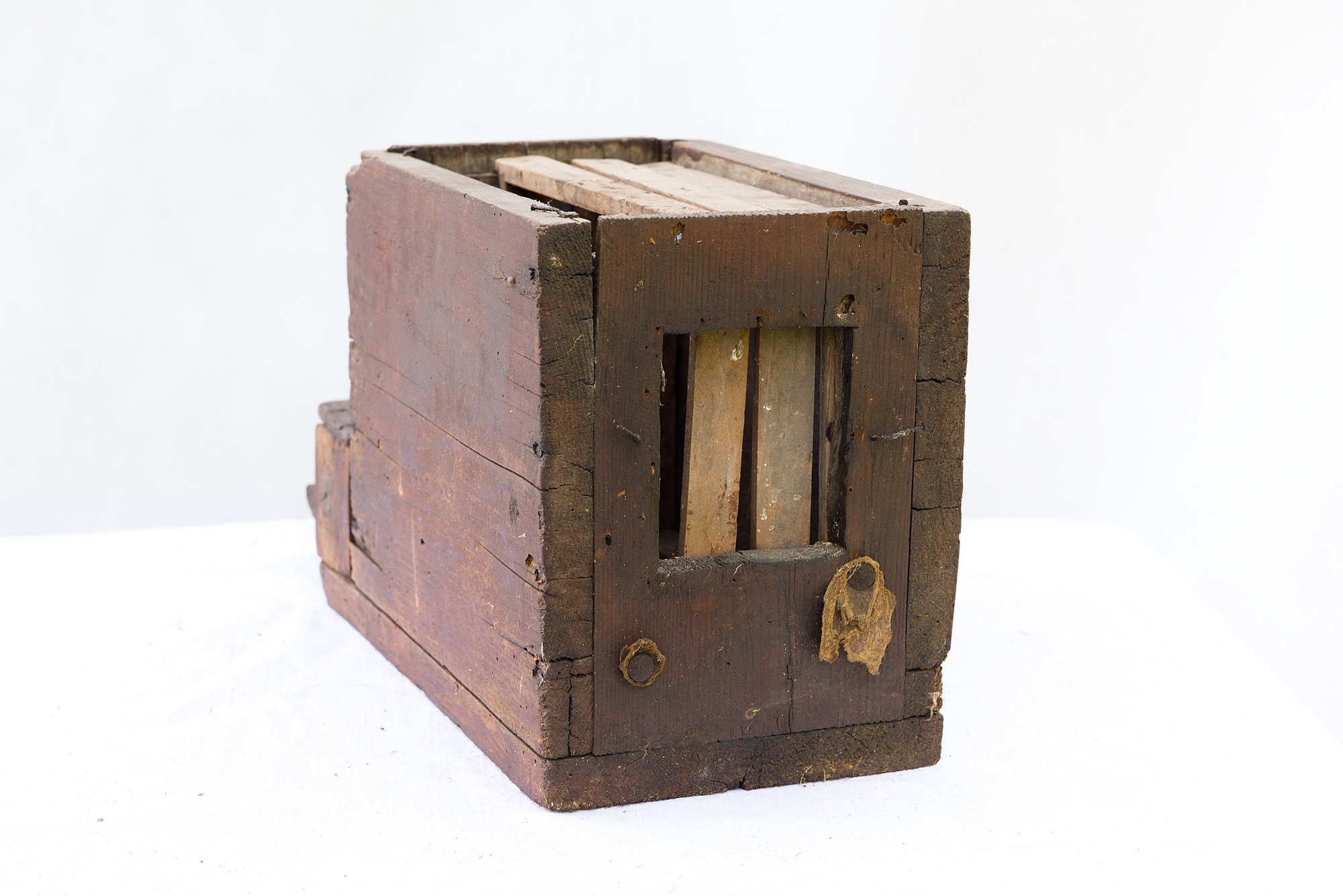 Popis Drevený štvorrámikový úľ na chov matiek, nazývaný "oplodniačik". Zo zadnej strany úľa je otvor na vetranie, ktorý bol zakrytý hustým pletivom. Pohľad zozadu na vetrací otvor. Všeobecný popis Úle si včelári vyrábali sami. Poznámky Úľ je súčasťou zbierky úľov a včelárskeho náradia Ondreja Belicu z obce Hostie. Autor/-ka záznamu Veselský, Michal (1980-) Dátum vzniku diela 50. roky 20. storočia Región pôvodu Bez zaradenia Miesto záznamu Hostie Dátum zaznamenania 27.8.2015 Predmetová klasifikácia 4.2.7.9. Včelárstvo Kľúčové slová úľ