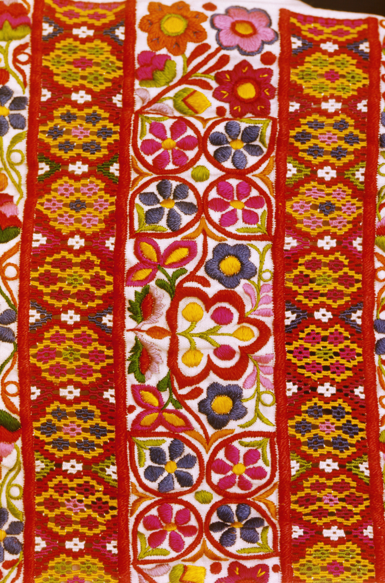 Popis Výšivka zo ženských sviatočných rukávcov. Kompozíciu výšivky nahusto ukladaných rozvetvených rastlinných motívov predeľujú pásy mriežky, nazývanej hrachovinka či "rezance" ohraničené červenými pruhmi. Predkreslené rastlinné ornamenty sú vyšívané stonkovým a plným plochým stehom pestrofarebnými bavlnenými niťami. Detail. Autor/-ka záznamu Szabó, Tibor (1935-2014) Obec pôvodu Čataj Dátum vzniku diela prvá polovica 20. storočia Región pôvodu Trnavská oblasť Predmetová klasifikácia 5.1.3. Výšivka